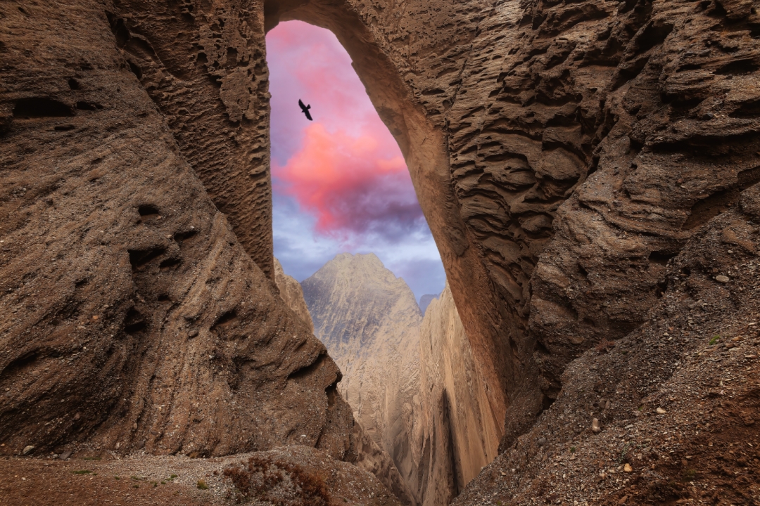 阿图什天门——鬼斧神工。原始的气息,震撼人心的美丽高原风景,深藏于天山之中的“∩”型天然石拱门高457米,高度世界之最,可容下整座巴黎“埃菲尔铁塔”。阿图什天门之旅被美国《ADVENTURE》杂志推荐为全球25条最新探险线路之一。回首天门一路,犹如人生道路,坦途、崎岖、风景、辛劳与欢愉。