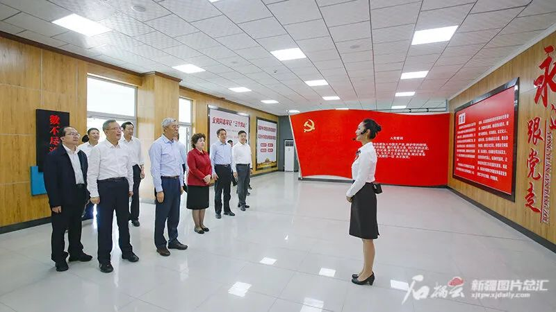 8月29日,江西省党政代表团一行在阿克陶县昆仑佳苑社区,调研巩固易地扶贫搬迁成果。石榴云/新疆日报记者谢龙摄