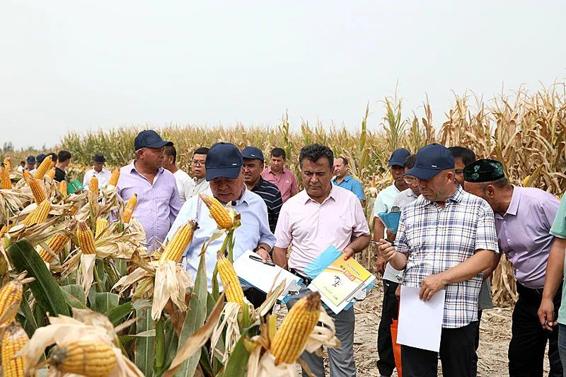 ▲图为克州正播玉米新品种对比试验展示现场观摩鉴定会在阿克陶县加马铁热克乡举行