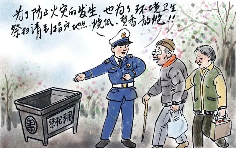 七、进入山区林地进行祭扫,须遵守当地森林防火规定,切勿在草地、林地内乱扔烟头、燃放烟花爆竹和焚香烧纸。在允许焚香烧纸区域,祭扫活动前要铲除周围杂草等可燃物,人员离开时要熄灭余火,以免引发山林火灾。