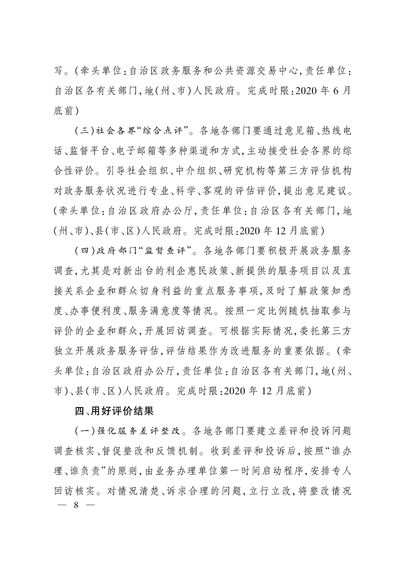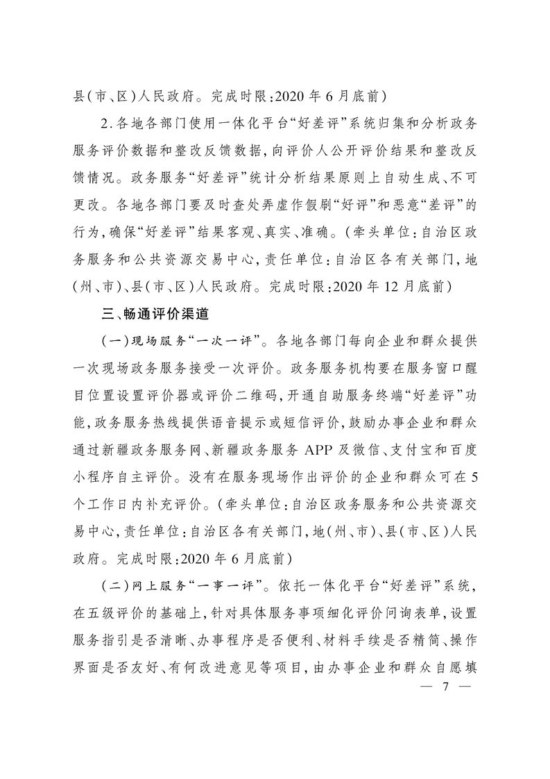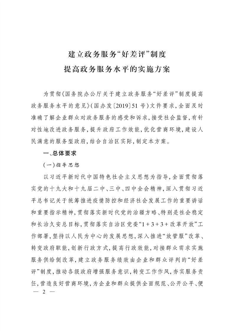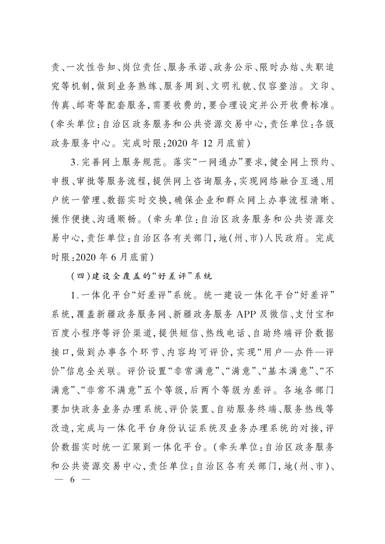 关于印发建立政务服务“好差评”制度提高政务服务水平的实施方案的通知