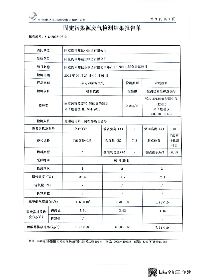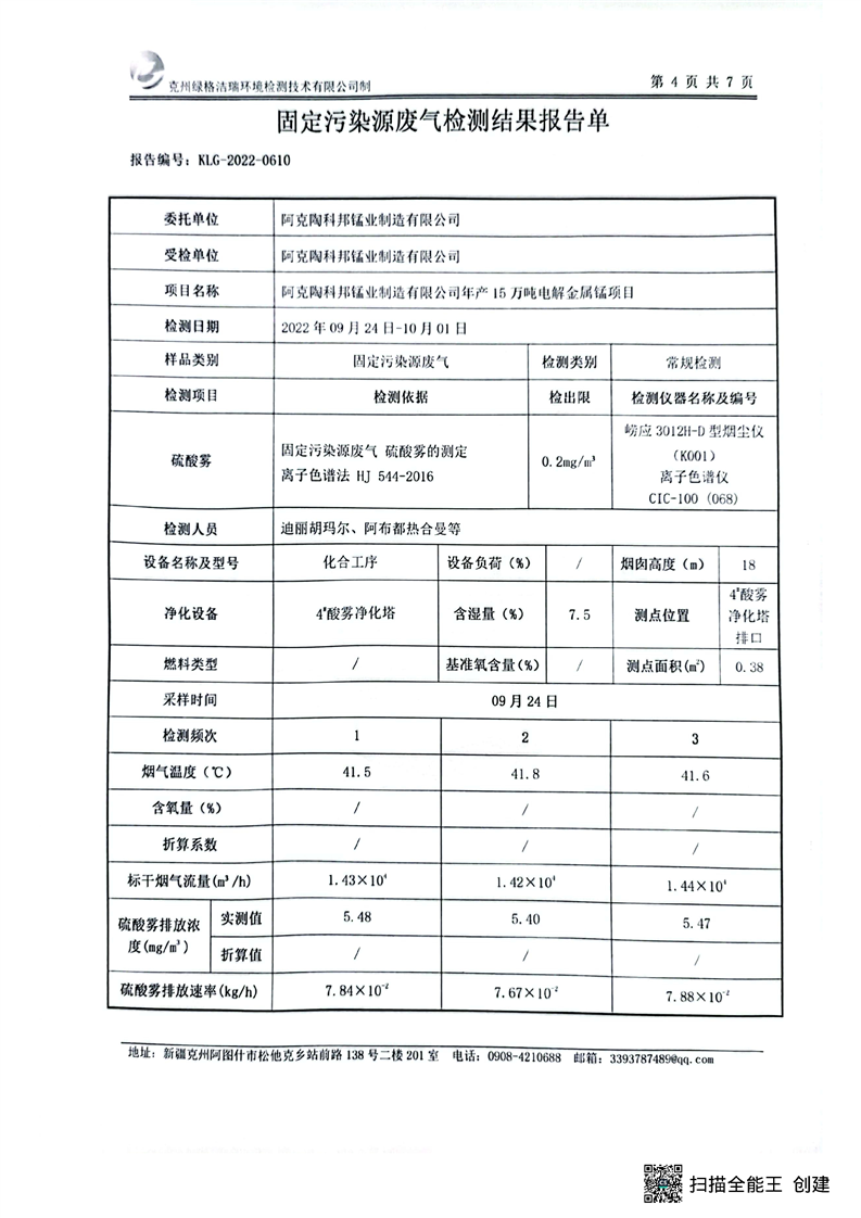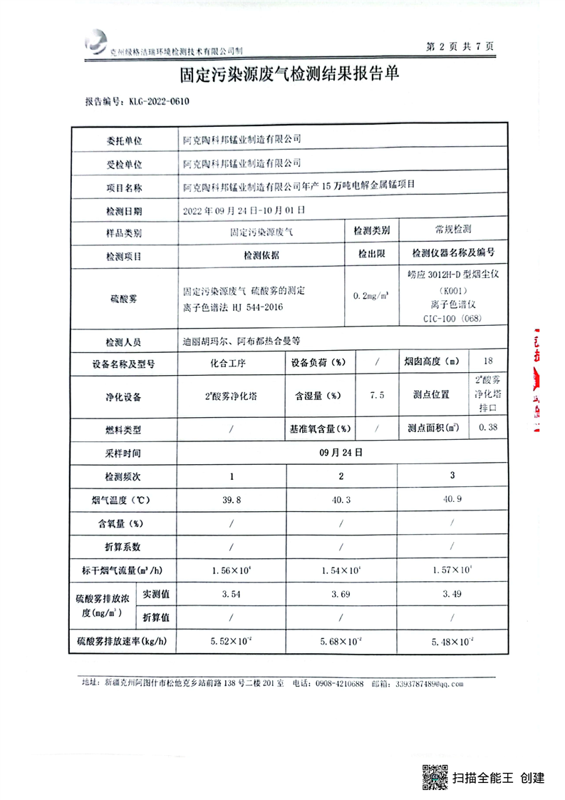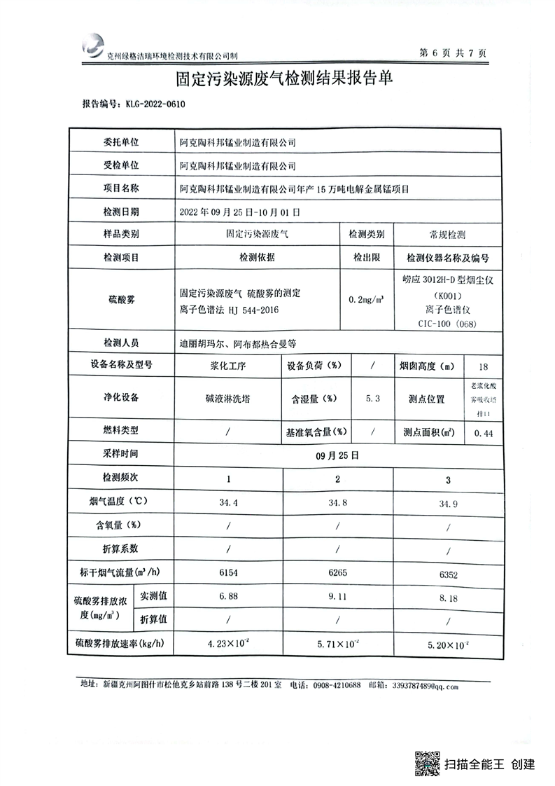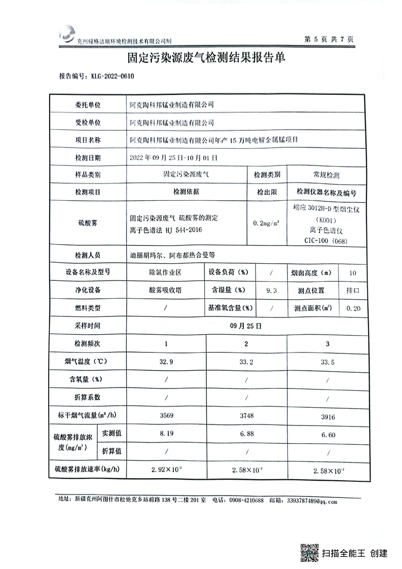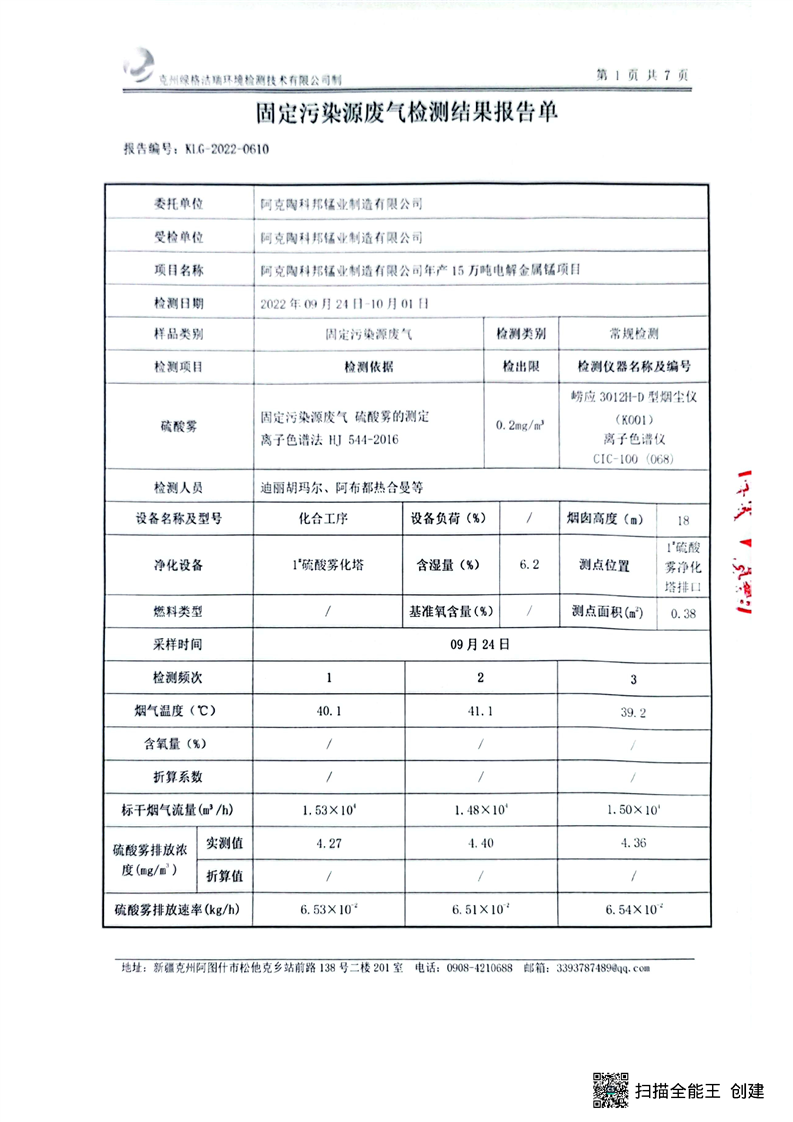阿克陶科邦锰业制造有限公司9月污染源检测报告