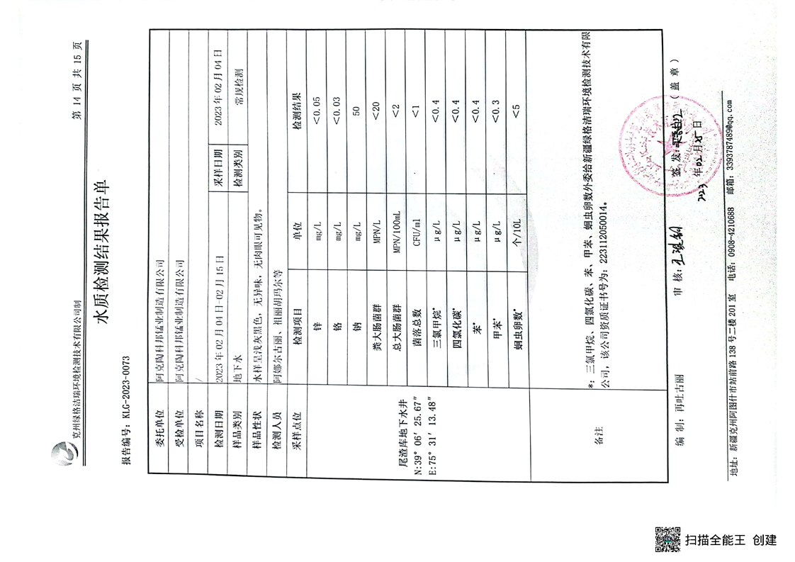 阿克陶科邦锰业制造有限公司2023年2月份污染源检测报告