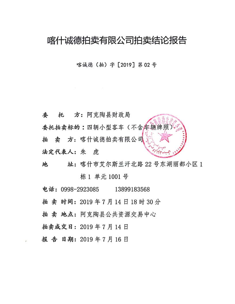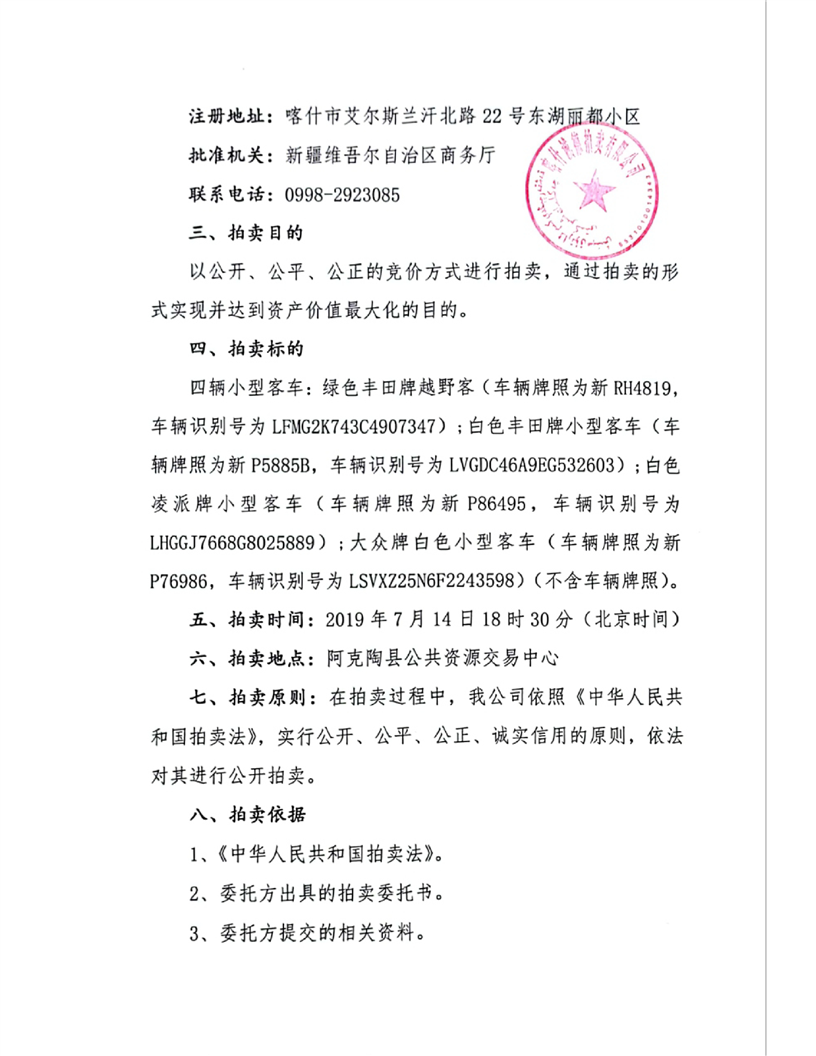 阿克陶县四辆小型客车(公务用车)拍卖材料