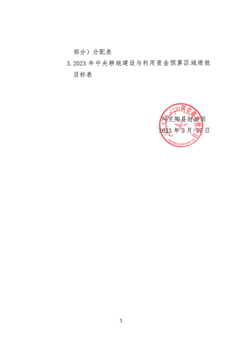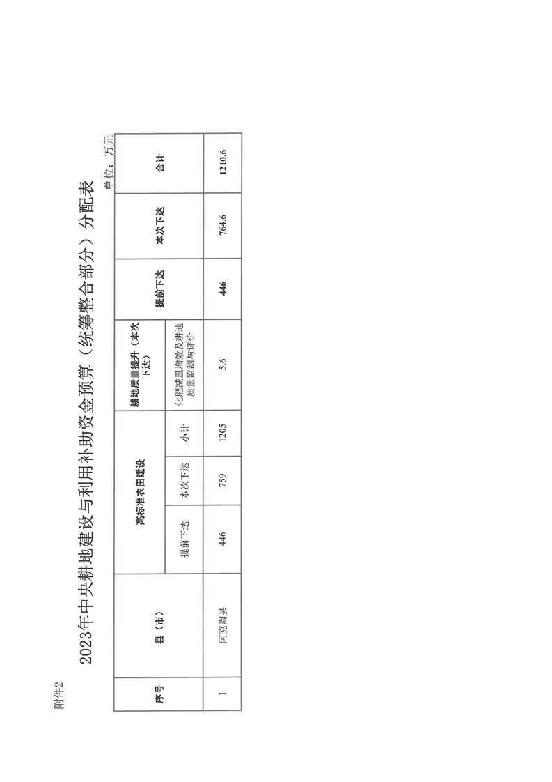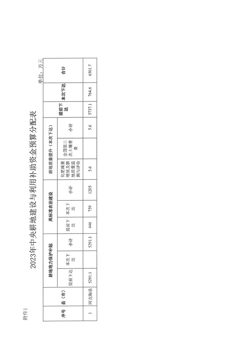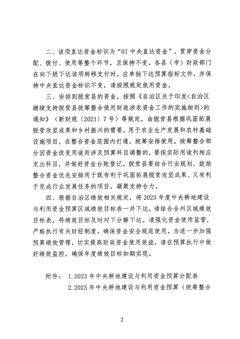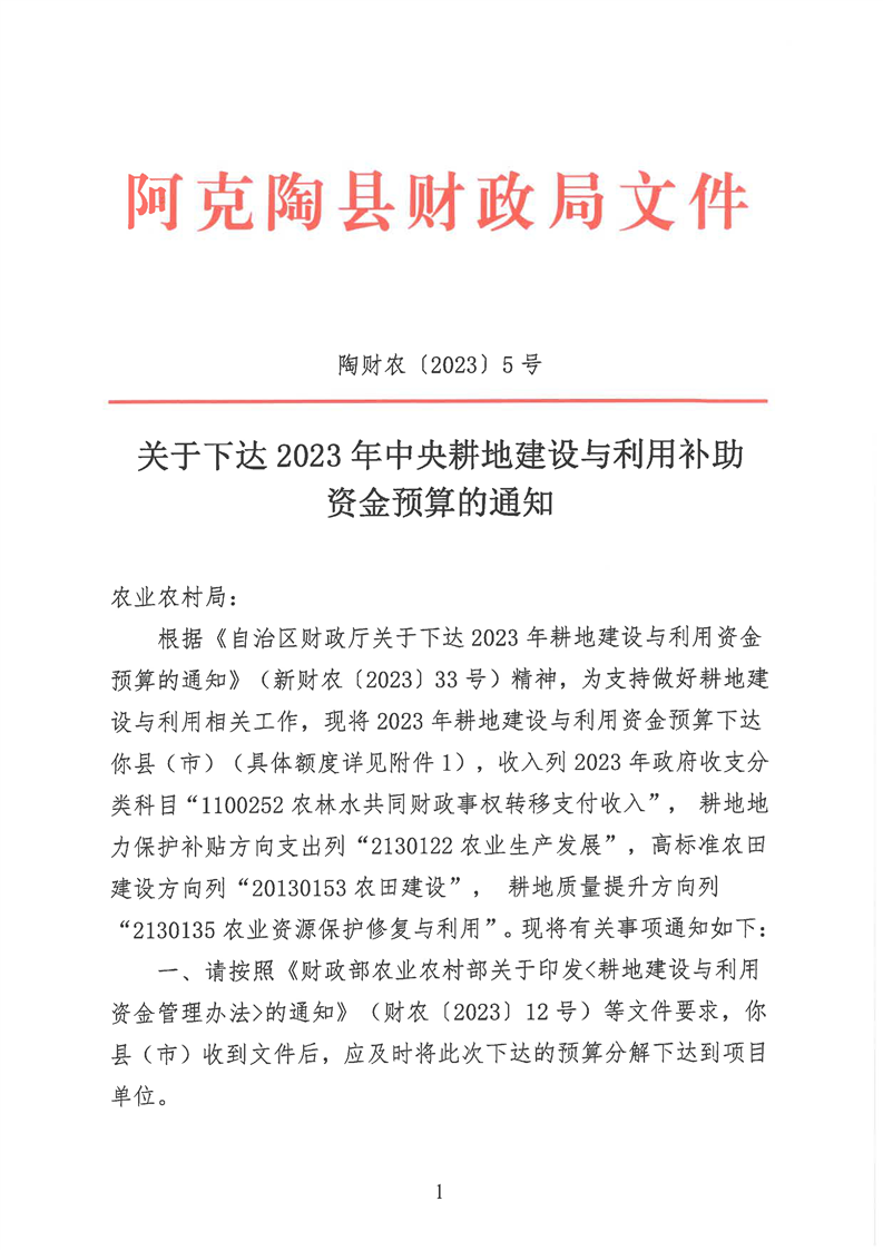 关于下达2023年中央耕地建设与利用补助资金预算的通知