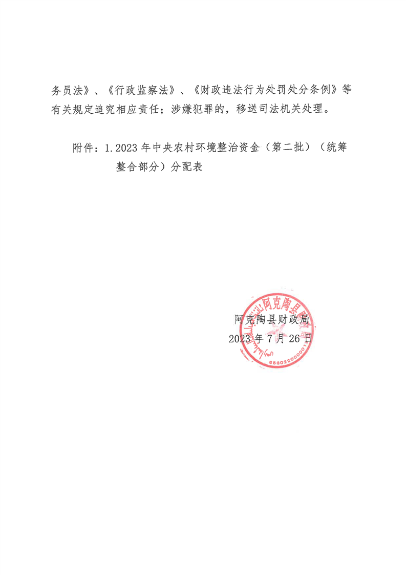 关于下达2023年中央农村环境整治资金(第二批统筹整合部分)预算的通知