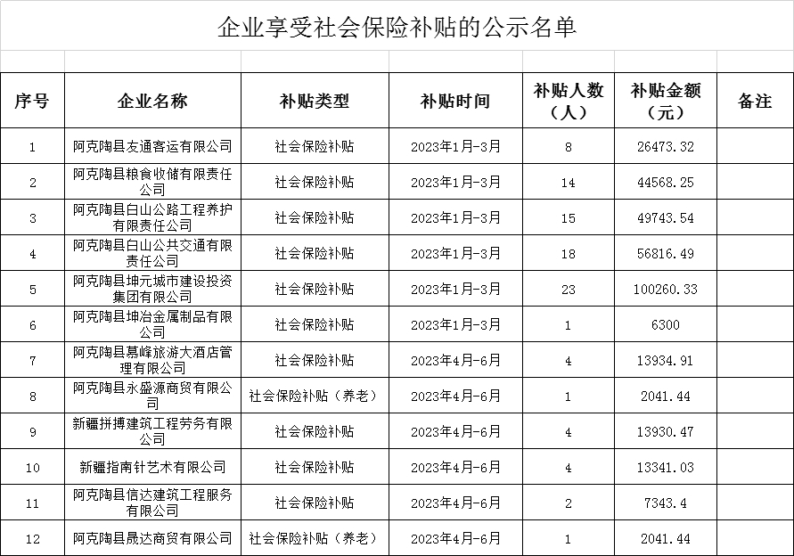 为进一步发挥各项就业补贴政策在减负、稳岗、促就业方面的作用,经审核,同意以下企业社会保险补贴的申请。现将具体企业名单及金额进行公示,公示期为7天(2023年7月21日-7月27日)。欢迎社会各界监督,接受实名举报。