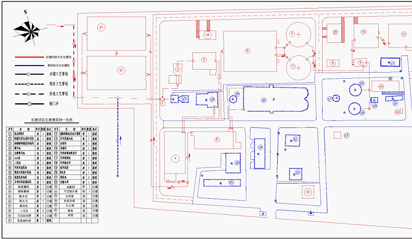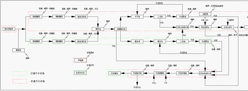 主要建设内容包括对现有沉砂池与氧化沟配水井之间进行改造,共用扩建污水处理线的调节池及酸化水解池,二沉池出水并入扩建污水处理线的深度处理部分进行深度净化;一期工程污泥进入扩建污水处理线的污泥处理间进行处理。二期工程新建格栅间及污水提升泵房、细格栅和旋流沉砂池间、调节池、水解酸化池、AA/O池、二沉池、消毒间、污泥回流泵池、污泥脱水间、污泥浓缩池、鼓风机房、深度处理提升泵池、高效沉淀池间、反硝化深床滤池间、接触消毒池及出水计量槽、反冲洗废水池、加药间、事故池等。