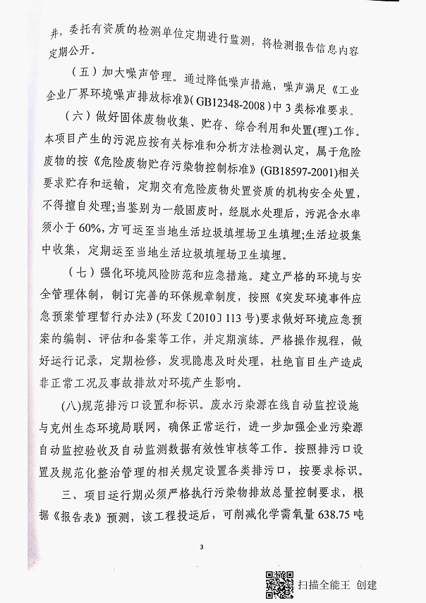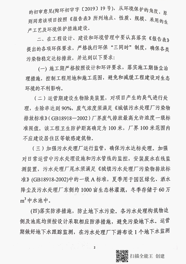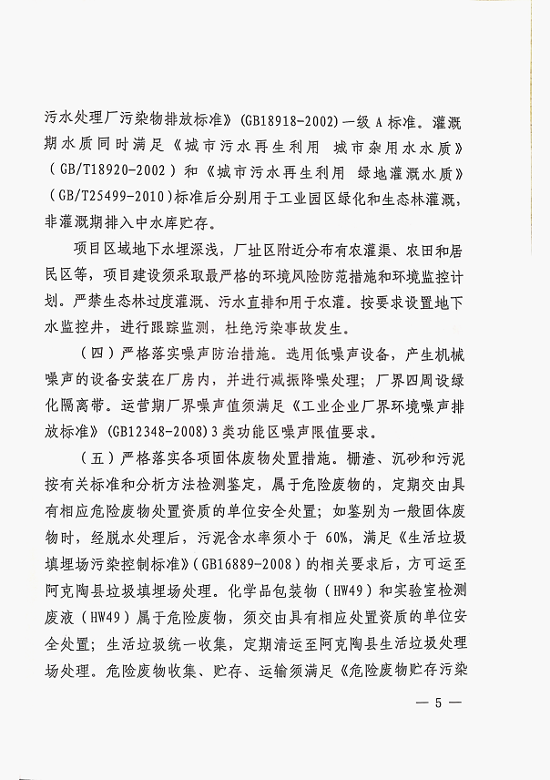 (2)克孜勒苏柯尔克孜自治州生态环境局《关于<阿克陶县城北轻工业园区生活污水处理厂建设项目环影响报告表>的批复》(克环评函〔2019〕62号),2019年11月17日;