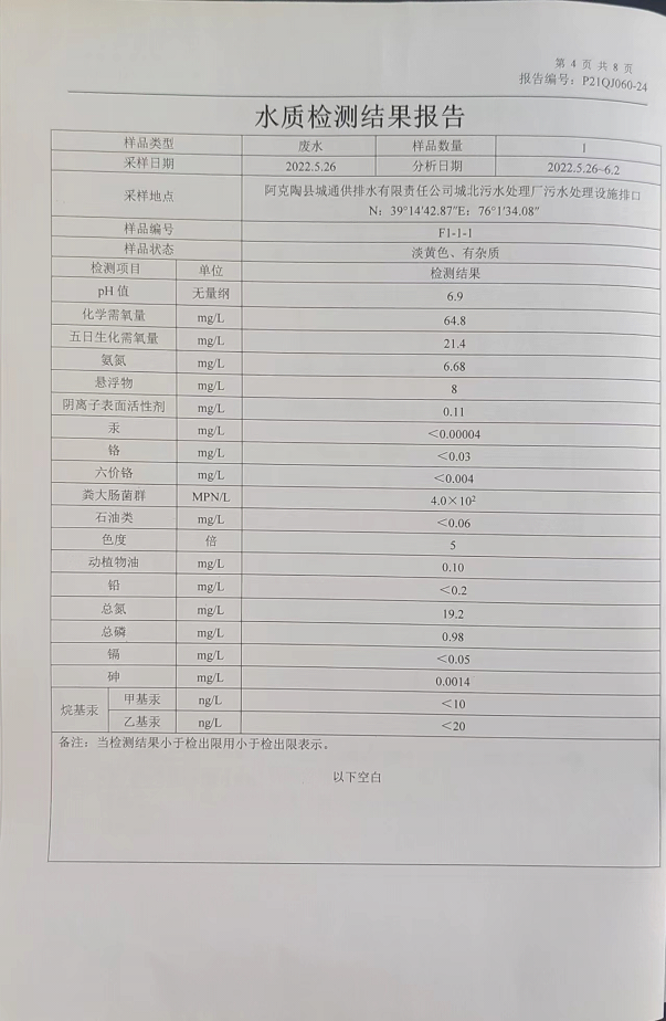(3)新疆大域智汇环保咨询服务有限公司《阿克陶县城北轻工业园区污水处理厂改扩建与提标工程环境影响报告书》,2020年6月;