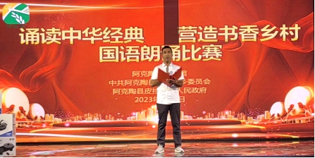 为深入学习宣传贯彻党的二十大精神和习近平总书记对语言文化的重要指示批示精神,完整准确贯彻新时代党的治疆方略,以落实立德树人为根本任务,以铸牢中华民族共同体意识为主线,加大阿克陶县国家通用语言文字推广力度,传承弘扬中华优秀语言文化,近日,阿克陶县图书馆以第26届全国推广普通话宣传周为契机,分别在皮拉勒乡、阿克陶镇、克孜勒陶镇举办“诵读中华经典营造书香乡村”农牧民国语朗诵比赛。