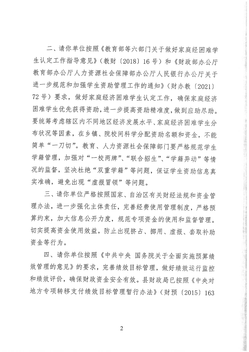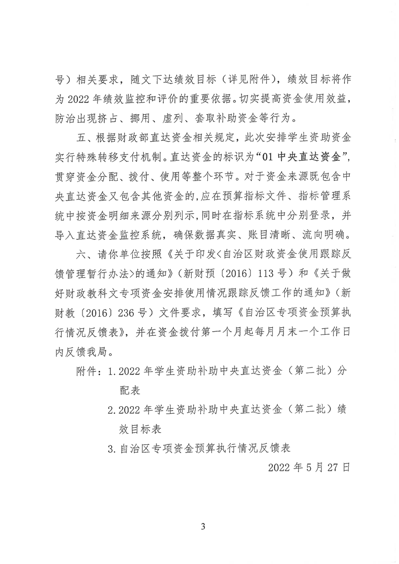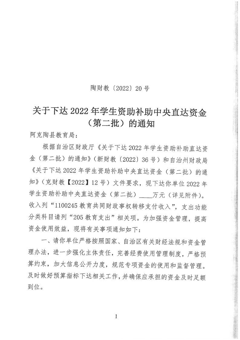 关于下达2022年学生资助补助中央直达资金(第二批)的通知