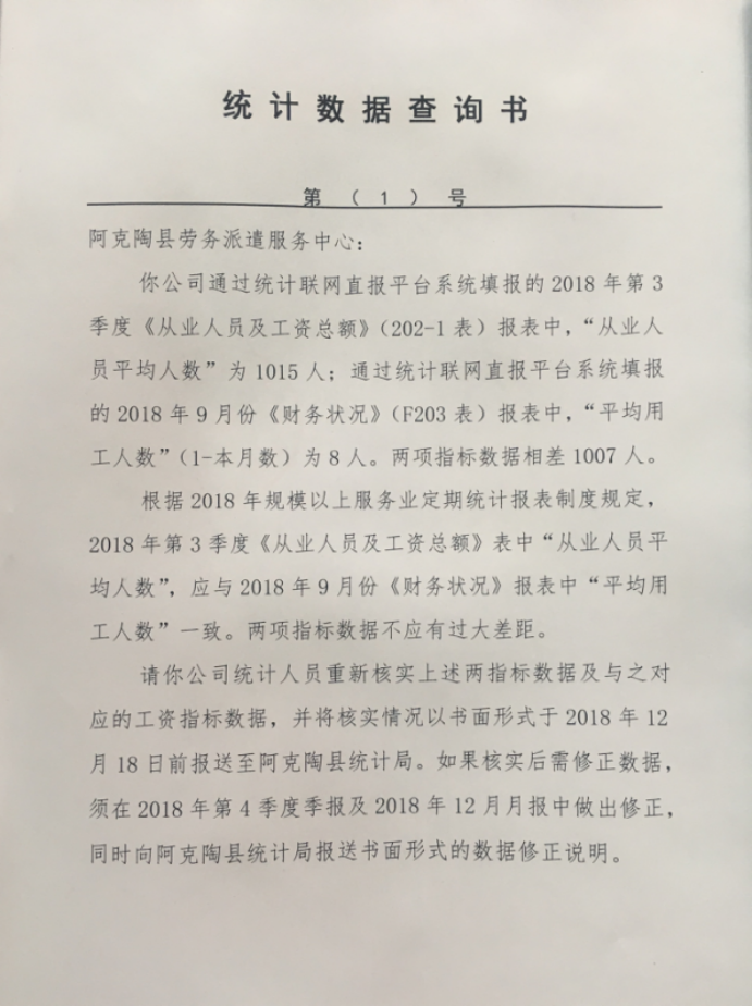 阿克陶县劳务派遣服务中心统计报表数据异常
