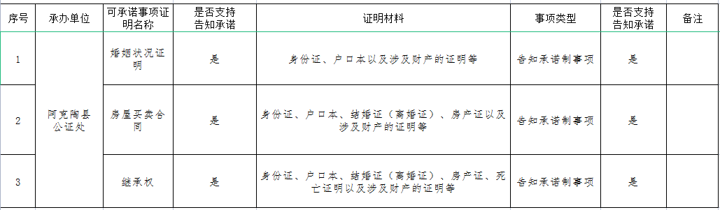 县本级试行告知承诺制的证明事项和涉企经营许可事项表
