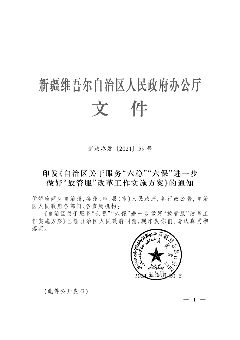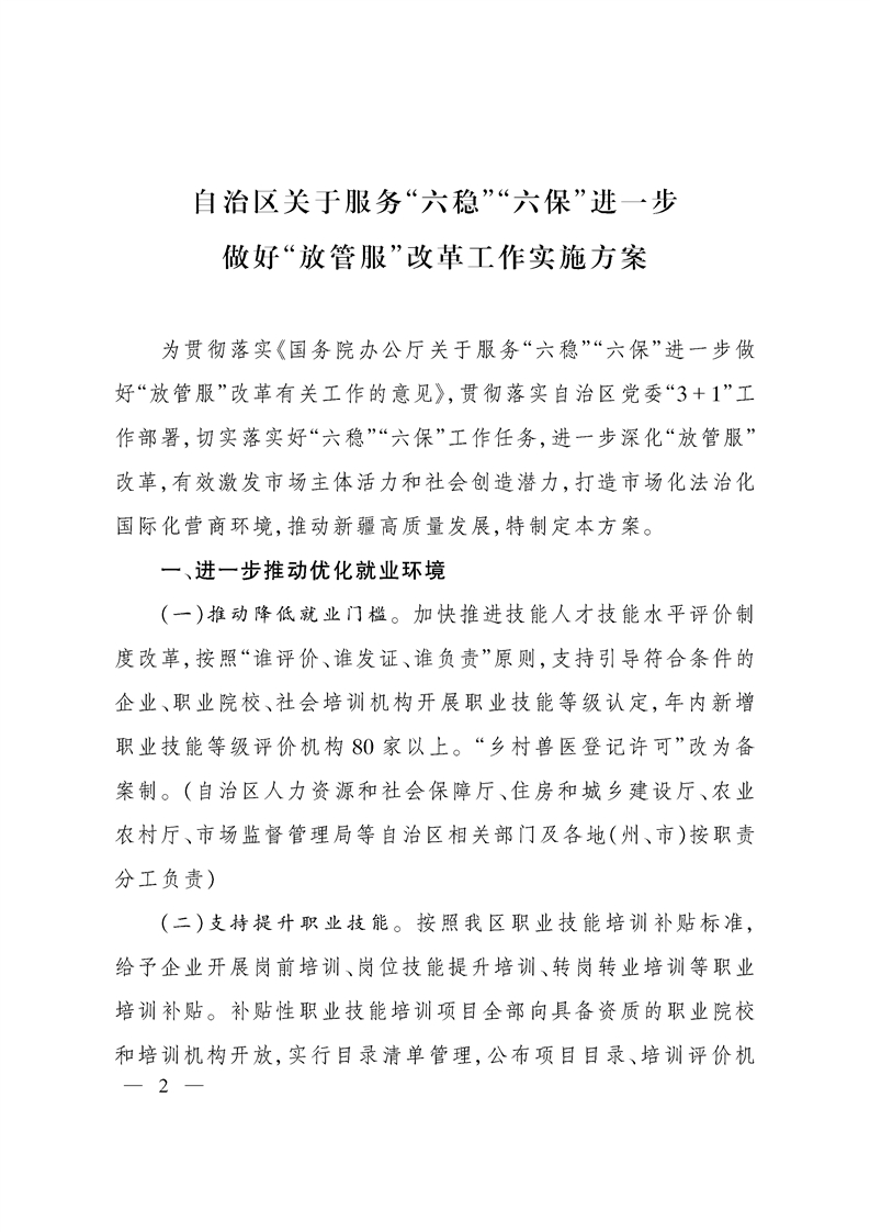 【自治区】印发《自治区关于服务“六稳”“六保”进一步做好“放管服”改革工作实施方案》的通知
