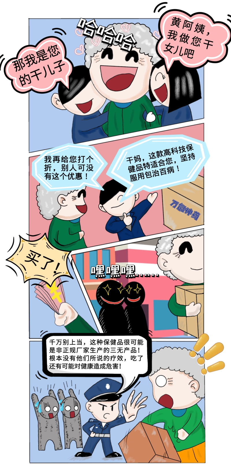民警赶到黄阿姨家,发现该保健品并非正规厂家生产,其成分、疗效有待考证,在民警不断地劝说下,黄奶奶终于认清了骗局。