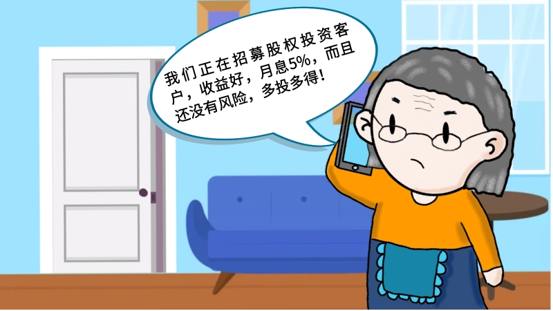 “我们正在招募股权投资客户,收益好,月息5%,而且还没有风险!”该名男子说。