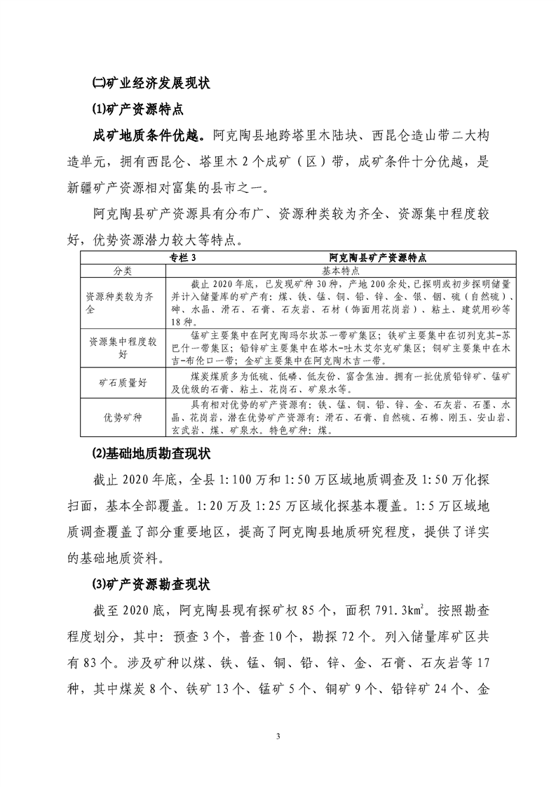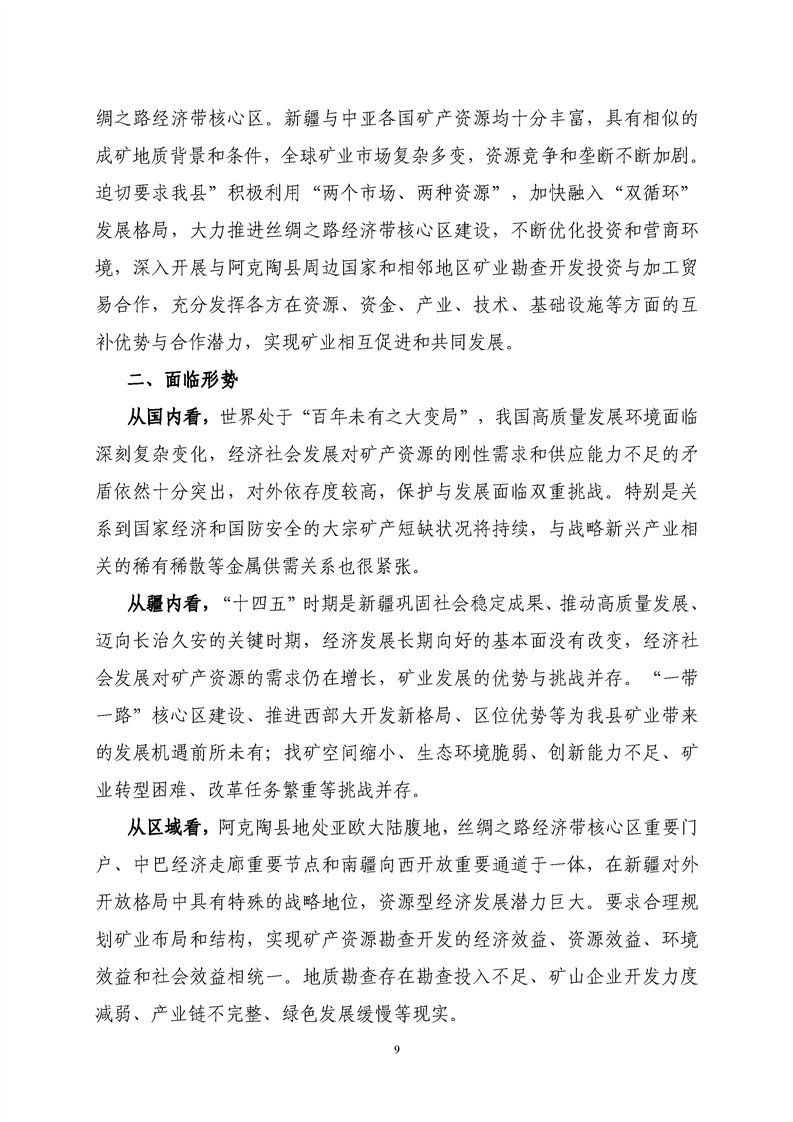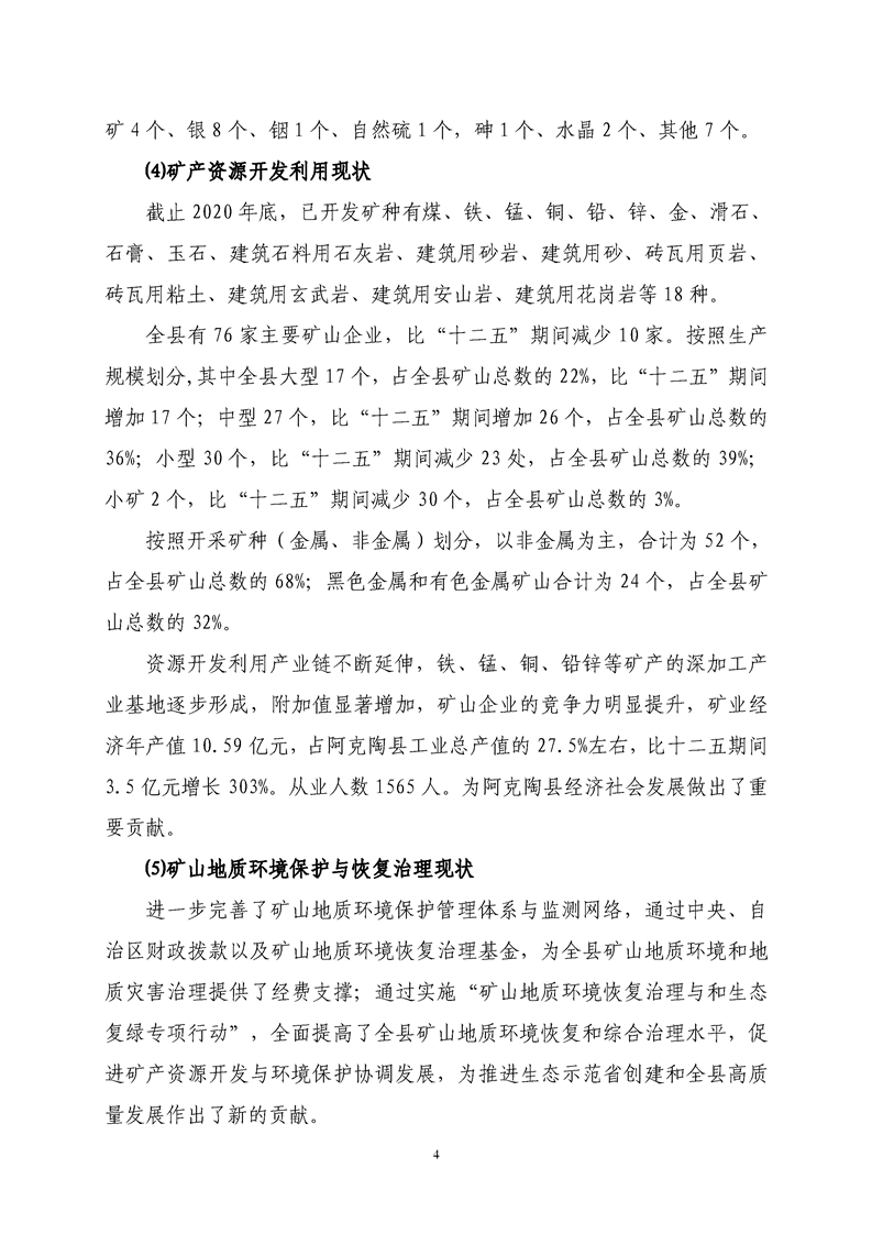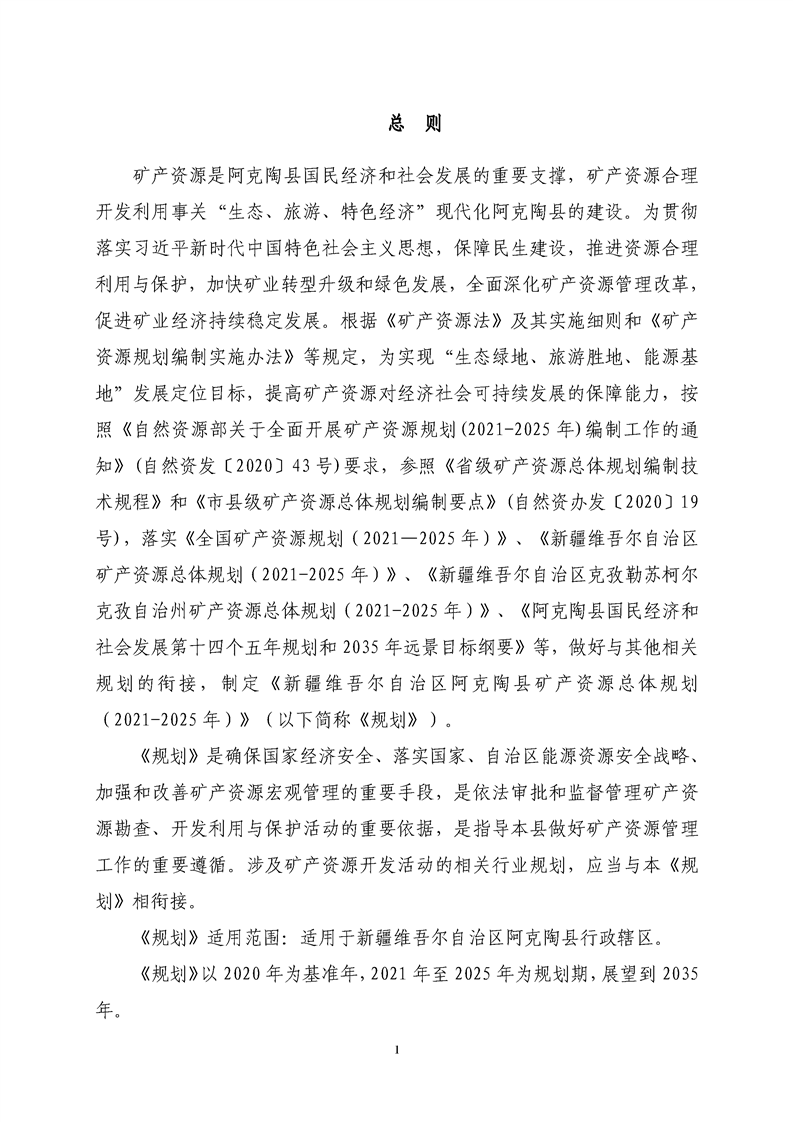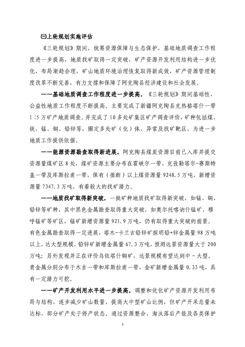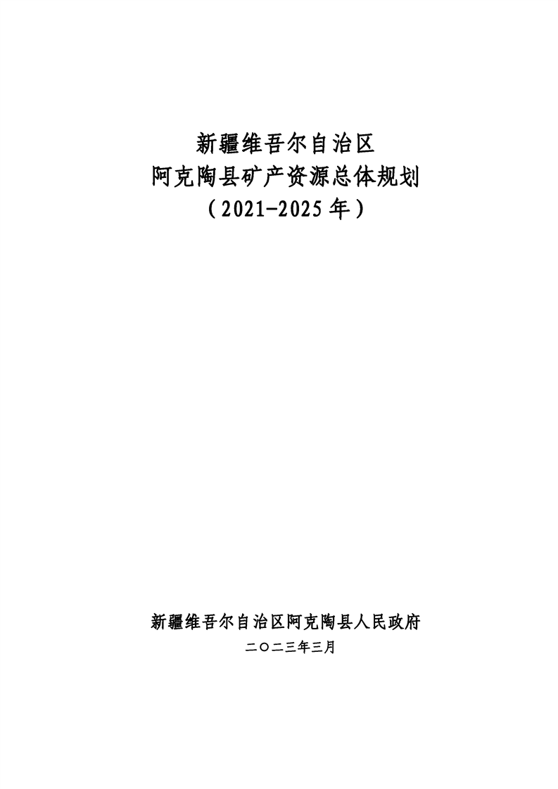 新疆维吾尔自治区阿克陶县矿产资源总体规划(2021-2025年)
