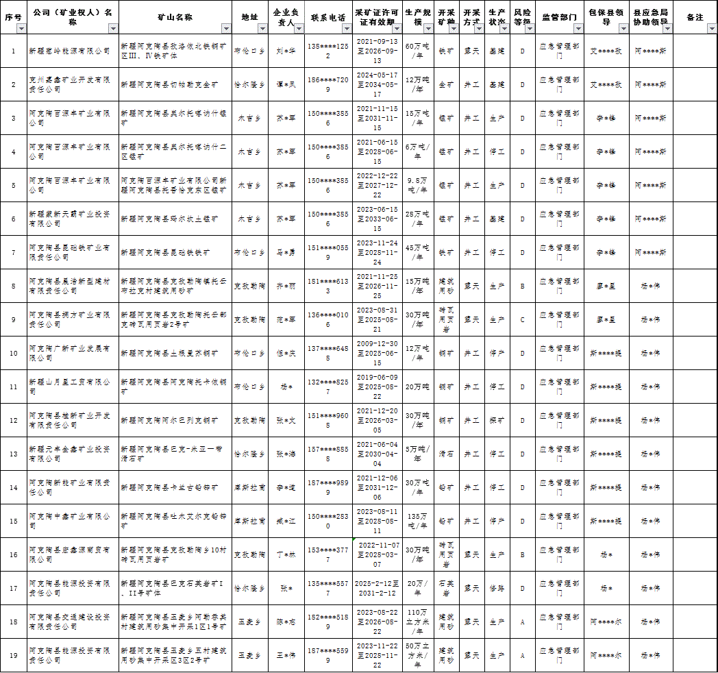 阿克陶县矿山安全生产包保(包联)责任公告清单