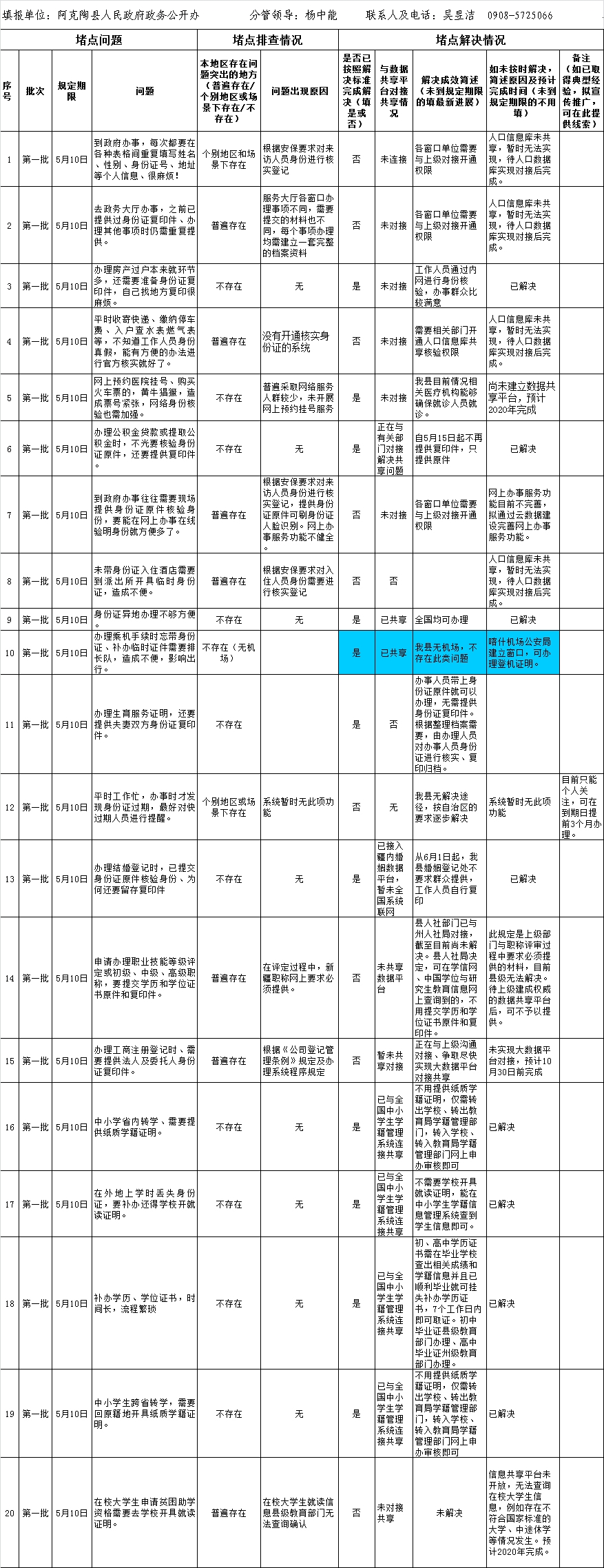 阿克陶县第一、二、三、四、五批群众办事堵点问题处理进展报告