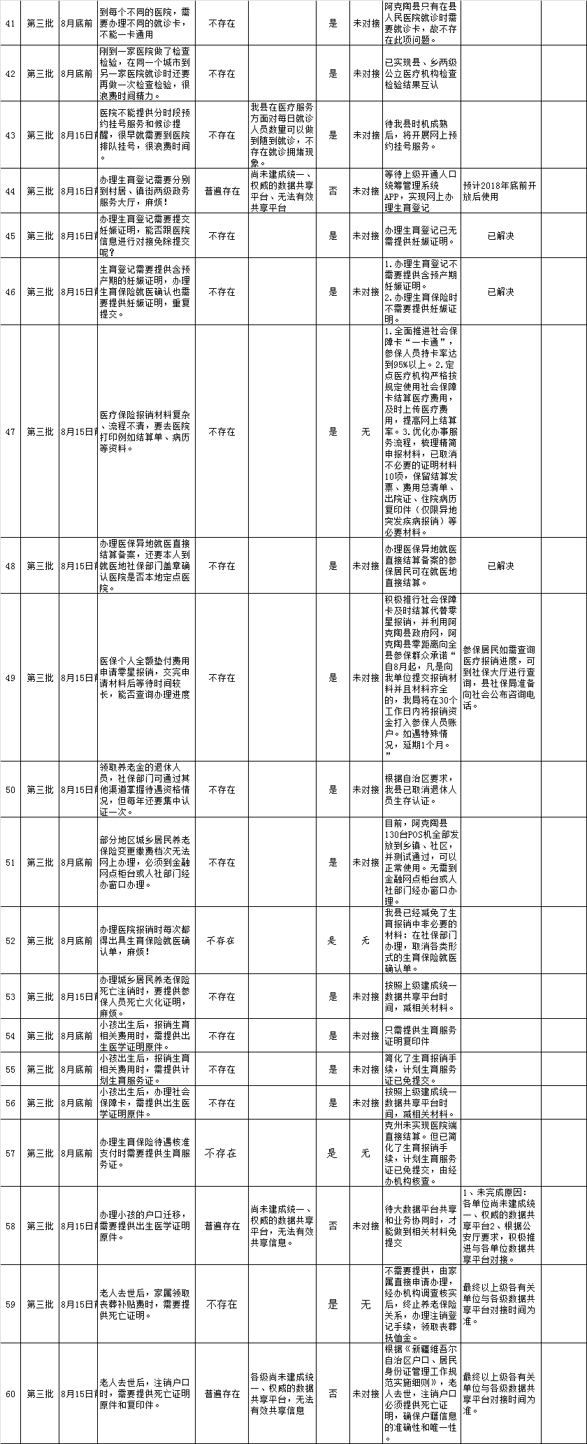 阿克陶县第一、二、三、四、五批群众办事堵点问题处理进展报告