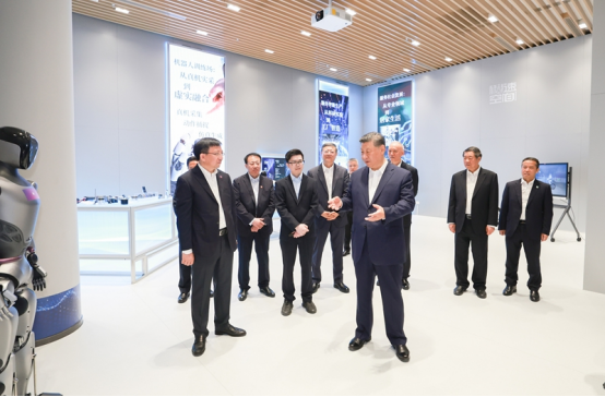 29日上午,习近平在中共中央政治局委员、上海市委书记陈吉宁和市长龚正陪同下,来到位于徐汇区的上海“模速空间”大模型创新生态社区调研。