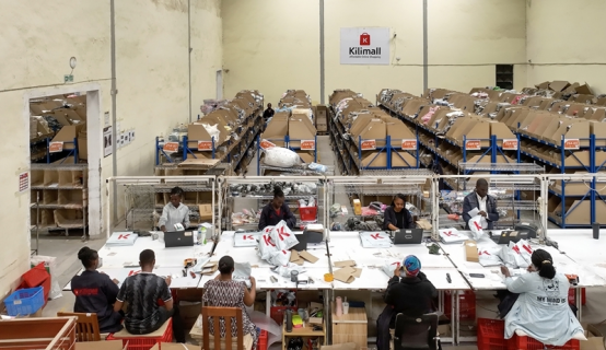 2023年7月28日,在肯尼亚姆洛隆戈,Kilimall员工在仓库内分拣货物。新华社记者李亚辉摄