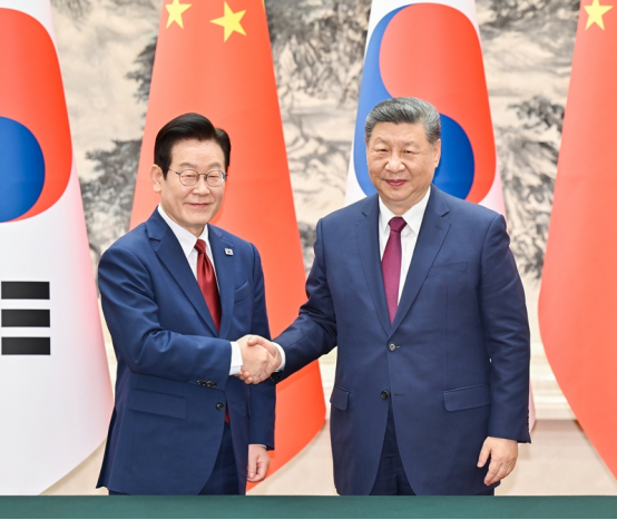 习近平强调,中韩两国长期坚持“以和为贵”“和而不同”,超越社会制度和意识形态差异,相互成就、共同发展。双方应延续这一优良传统,不断增进互信,尊重各自选择的发展道路,照顾彼此核心利益和重大关切,坚持通过对话协商妥善解决分歧。中共二十届四中全会审议通过“十五五”规划建议,为未来5年中国发展擘画蓝图,也为世界各国提供广阔机遇。中韩经济联系紧密,产业链供应链深度互嵌,合作互惠互利,要加强发展战略对接和政策协调,做大共同利益蛋糕,在人工智能、绿色产业、银发经济等新兴领域打造更多合作成果。双方要增进人员往来,开展青少年、媒体、体育、智库、地方等方面交往,让正面叙事成为民意主流。