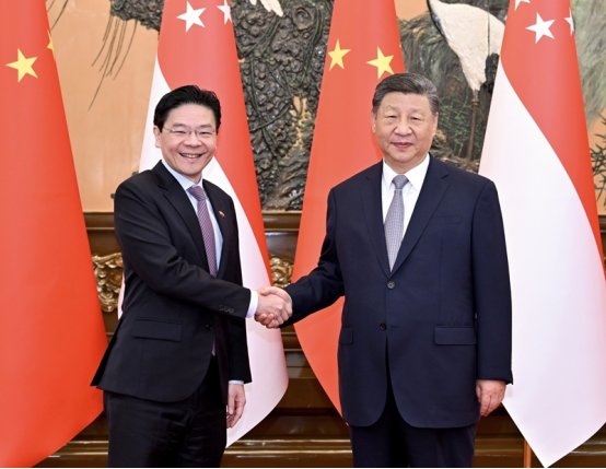 新华社北京6月24日电(记者董雪)6月24日上午,国家主席习近平在北京人民大会堂会见来华进行正式访问的新加坡总理黄循财。