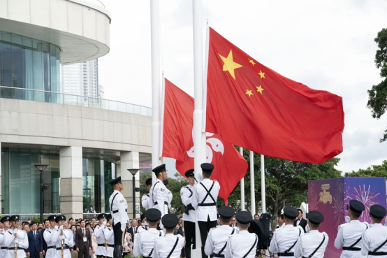 7月1日,香港特区政府在金紫荆广场举行升旗仪式,庆祝香港回归祖国28周年。