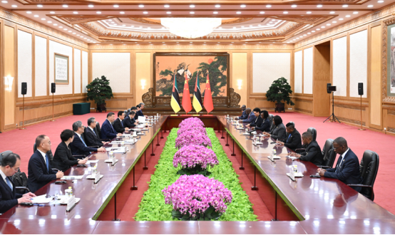 10月14日上午,国家主席习近平在北京人民大会堂会见来华出席全球妇女峰会的莫桑比克总理莱维。
