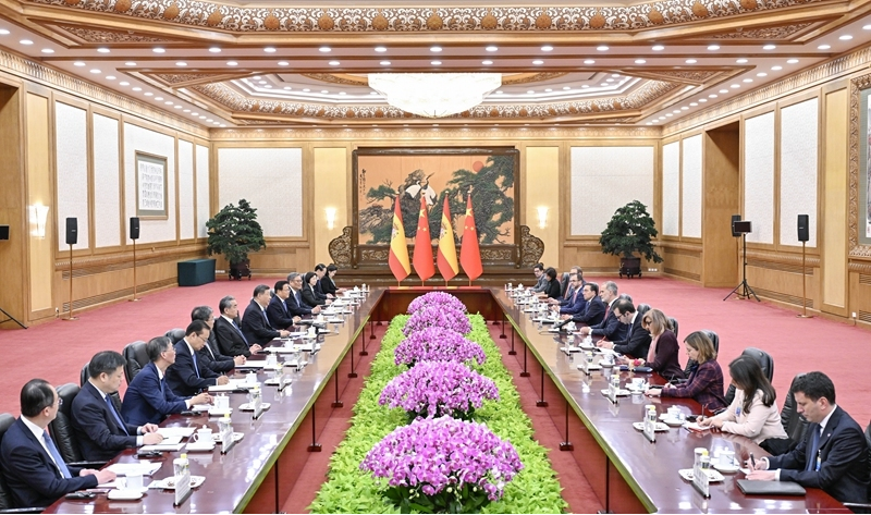 11月12日上午,国家主席习近平在北京人民大会堂会见来华进行国事访问的西班牙国王费利佩六世。