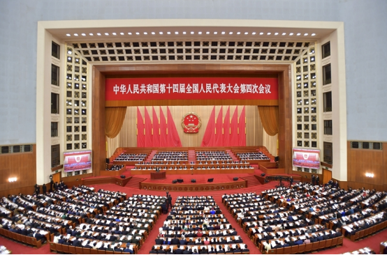 3月9日,十四届全国人大四次会议在北京人民大会堂举行第二次全体会议。