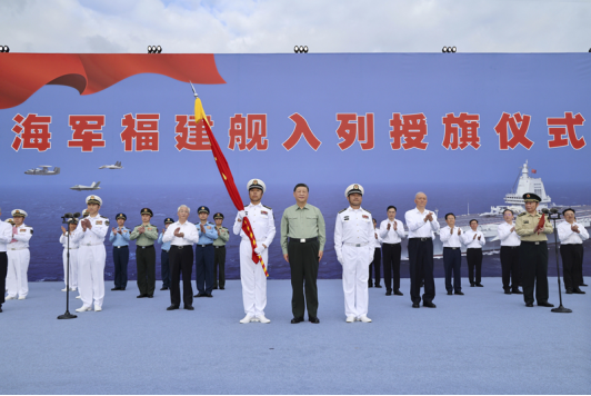我国第一艘电磁弹射型航空母舰入列 习近平出...