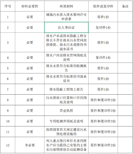 四、城镇污水排入排水管网许可证审批材料目录