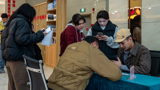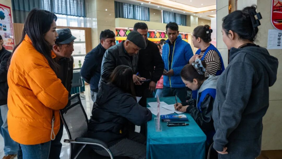 招聘会现场人头攒动、热闹非凡。前来应聘的村民在企业展位前有序排队,仔细浏览招聘信息,与企业代表深入交流岗位要求及薪资待遇。现场还设立政策咨询台,为求职者提供就业指导、法律援助等一站式服务。