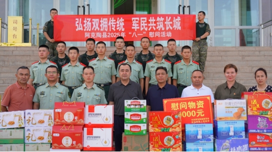 在中国人民解放军建军98周年即将来临之际,为弘扬拥军优属、拥政爱民的光荣传统,进一步巩固和发展军政军民团结的大好局面,7月30日,阿克陶县委书记刘卫民,县委副书记、县长艾尼瓦尔·尼牙孜,县人大常委会党组书记胡旺麒,县人大常委会党组副书记、主任热希提·吾甫尔,县政协党组副书记、主席买买提艾力·吐尔逊等县四套班子领导分组开展“八一”建军节慰问活动,向驻县部队官兵、现役军人家属和退役军人等致以节日祝贺和诚挚问候,对他们为阿克陶县社会稳定、经济社会发展所作出的贡献表示衷心感谢。
