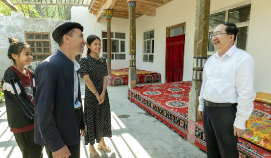 王学东在阿克陶县巴仁乡克孜勒吾斯塘村详细了解村民生产生活情况。全媒体记者王颖新摄