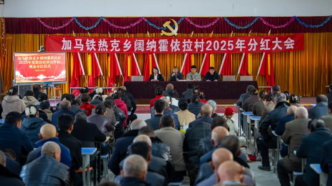 ▲图为加马铁热克乡阔纳霍依拉村2025年分红大会现场。全媒体记者麦合木提·阿卜拉摄