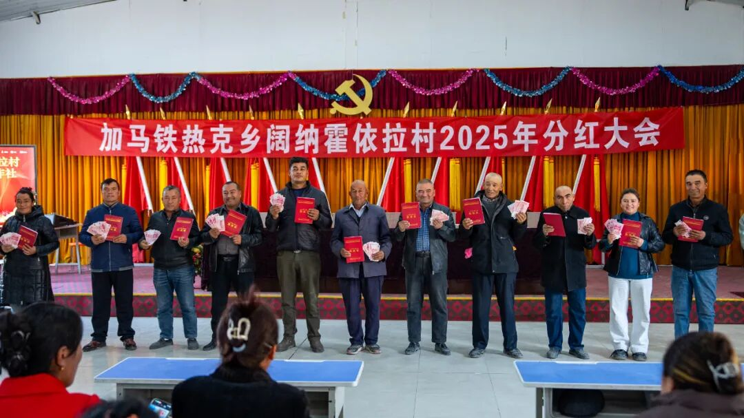 克州农业技术推广中心驻阔纳霍依拉村第一书记阿扎提古丽·吐尔迪表示:“我们通过整合土地资源发展特色种植,以农业技术赋能提质,让村民变股东。今天的分红,是大家实干的回报。下一步,我们将持续优化产业结构,拓展销售渠道,让集体经济更壮大,村民腰包更鼓!”