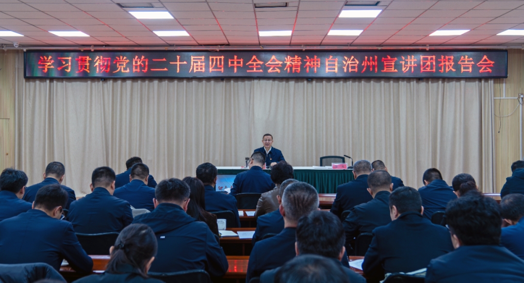 吾肉孜阿力·哈西哈尔巴依紧扣全会精神特别是习近平总书记重要讲话精神,深入阐释了“十四五”时期我国发展取得的重大成就和“十五五”时期国内外形势、经济社会发展的指导方针、主要目标、战略任务、重大举措,围绕建设现代化产业体系、加快高水平科技自立自强、建设强大国内市场、扩大高水平对外开放、促进区域协调发展、繁荣发展社会主义文化、推进国家安全体系和能力现代化等方面作了系统宣讲。他强调,党的二十届四中全会是在我国即将进入基本实现社会主义现代化夯实基础、全面发力的关键时期召开的一次十分重要的会议,学习宣传贯彻全会精神是当前和今后一个时期的重大政治任务,要按照自治区党委和州委的安排部署,精心组织、周密实施,在全州上下掀起学习宣传贯彻全会精神的热潮,切实将全会精神转化为推动高质量发展的强大动力。