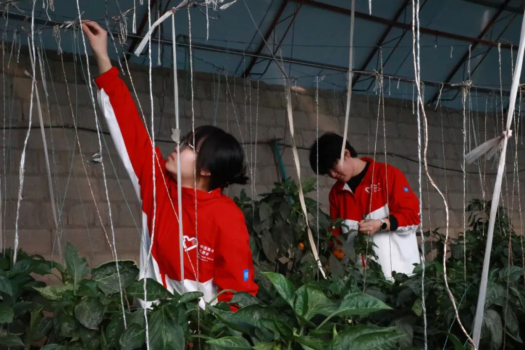 ▲图为西部计划志愿者在昆仑佳苑彩椒大棚回收吊绳。全媒体记者王紫卓摄