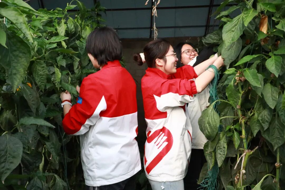 ▲图为志愿者们在欢声笑语中帮忙做农活。全媒体记者王紫卓摄