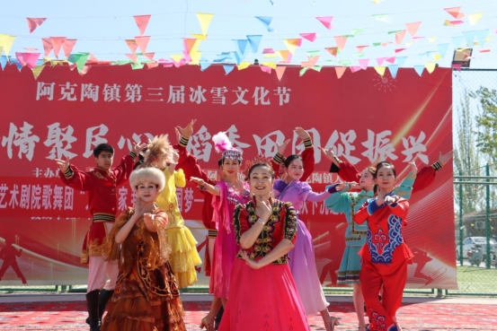 ▲图为新疆艺术剧院歌舞团演员在阿克陶镇开展惠民演出。