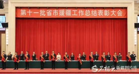 自治区党委副书记、自治区主席艾尔肯·吐尼亚孜主持。自治区人大常委会主任祖木热提·吾布力,自治区政协主席努尔兰·阿不都满金,自治区党委副书记、兵团政委何忠友,自治区党委副书记陈明国出席。自治区党委常委、组织部部长王琳宣读了自治区党委和政府关于表扬第十一批省市援疆工作先进集体的通报和关于表彰第十一批省市优秀援疆干部人才的决定。