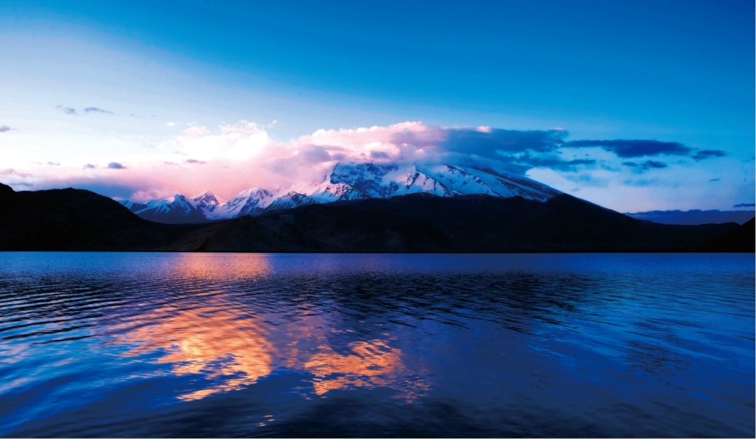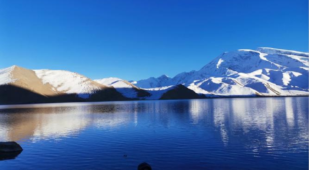 喀拉库勒湖,海拔约3600米,湖水幽蓝,山水同色,被誉为“黑色的湖”。与喀纳斯湖、赛里木湖并称为新疆最美的三大高原湖泊。
