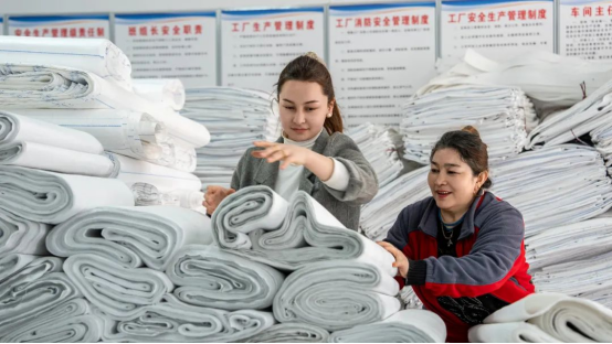 阿克陶县阿克陶镇拱拜提艾日克村3小队村民阿妮柯孜·阿卜力米提说:“我现在在村里成立的公司上班,在‘家门口’有了工作,每月3000块钱的工资,我挺满意的。”