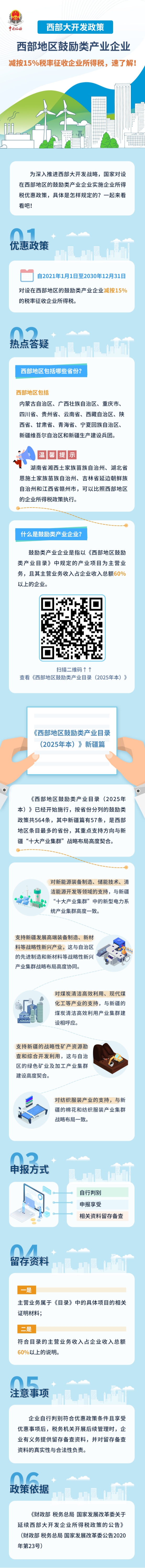 西部大开发政策丨西部地区鼓励类产业企业减按15%税率征收企业所得税,速了解!