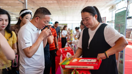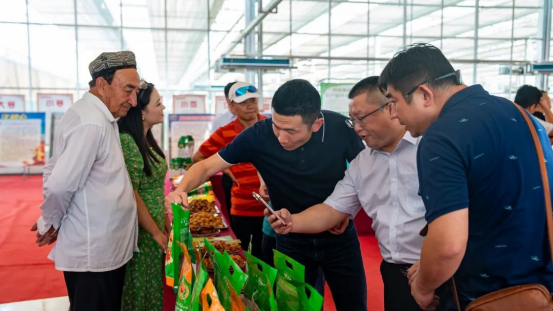 活动现场,20余家本地企业带来100余种特色农副产品。新疆果干、切糕、皮拉勒大米、核桃油、巴仁杏、无花果、牦牛肉酱等地域特色产品整齐陈列,工作人员热情洋溢,穿梭于展位间,向来访嘉宾和群众细致地讲解产品特点。不少展位前,消费者扫码即可直达线上店铺或了解即将上线的平台信息。试吃区里,无花果的蜜甜软糯、皮拉勒大米的晶莹弹润赢得阵阵赞叹,沉浸式的体验让更多人切实感受到阿克陶农副产品的卓越品质。