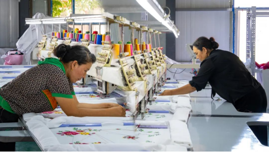 新疆精织商贸有限公司于2020年1月份正式成立,在巴仁乡古勒巴格村村委会的积极扶持下,如今已成为激活村庄内生动力、传承民族文化的“金钥匙”。车间负责人古拉姆拜尔·热合曼江向记者介绍:“目前厂子带动了80多名本村及周边妇女的稳定就业,人均收入2500元以上。刺绣厂的原料采用优质的新疆棉,厂里每天订单都很多,我们的刺绣主要销售到乌鲁木齐、阿克苏、和田、喀什等,大家每天干劲都很足!”工厂采取“集中生产+订单销售”模式,既确保了产品品质,更打通了市场渠道,让传统手艺真正成为帮助妇女们在家门口实现就业增收的稳定途径。